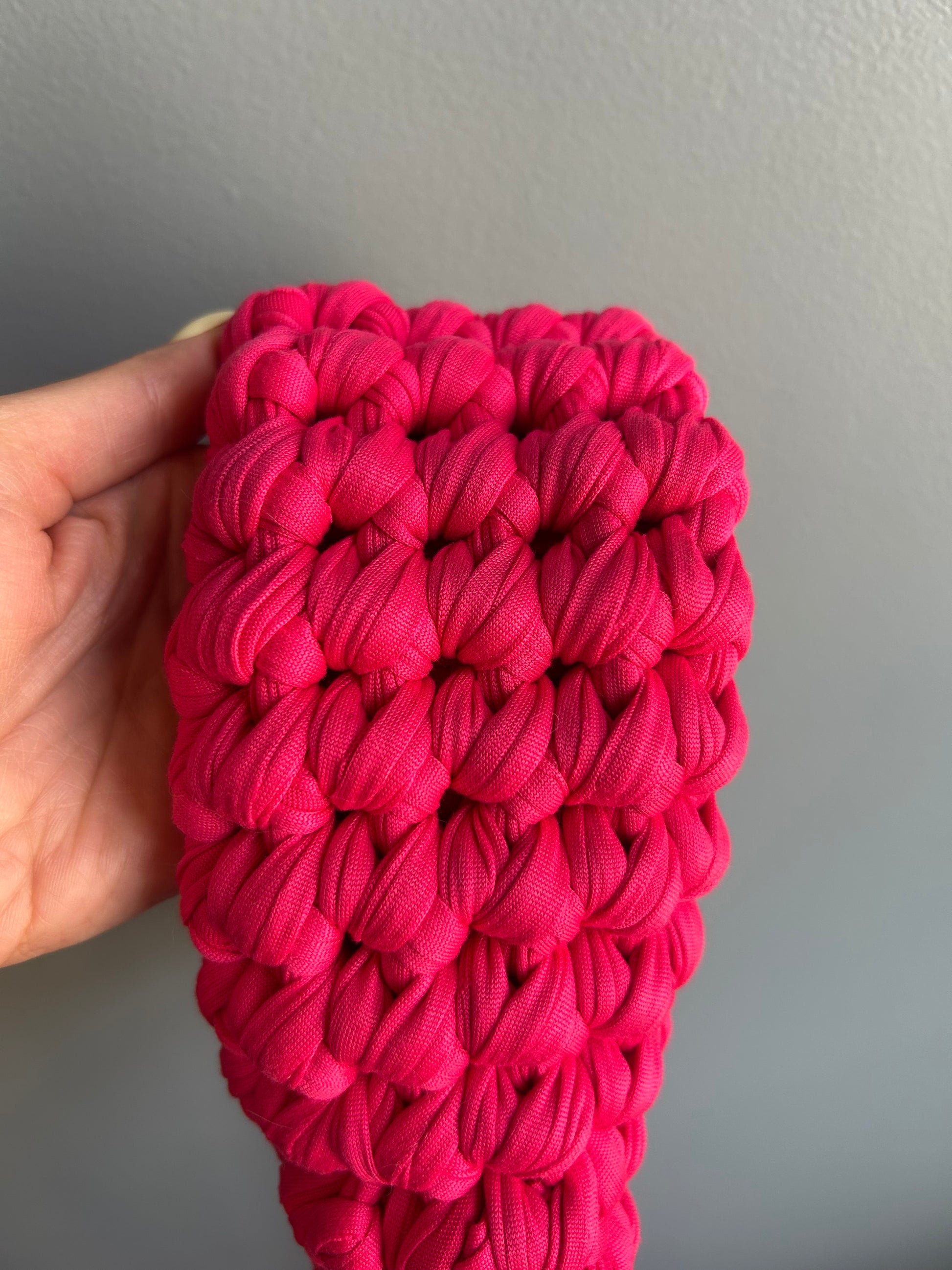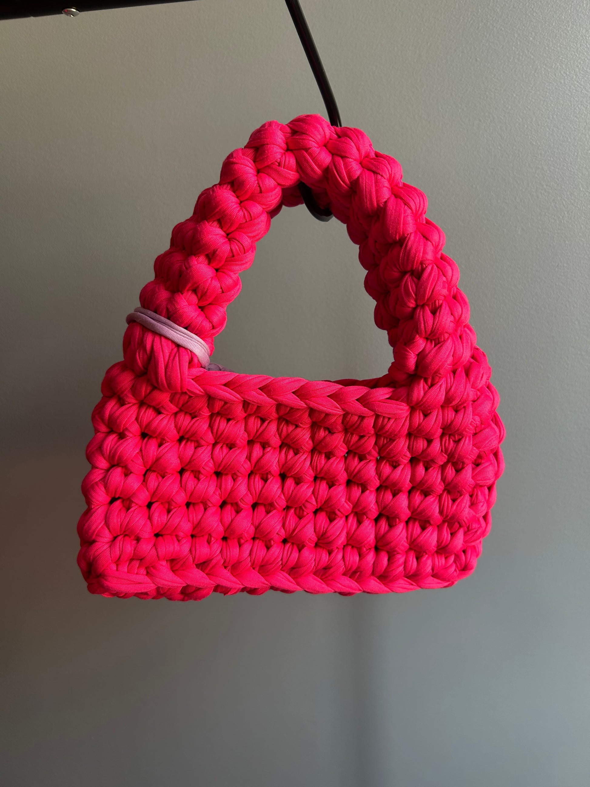 The Liz Bag is bold, structured, and unapologetically playful. Hand-crocheted with chunky fibers, it features a sturdy silhouette and thick handle.